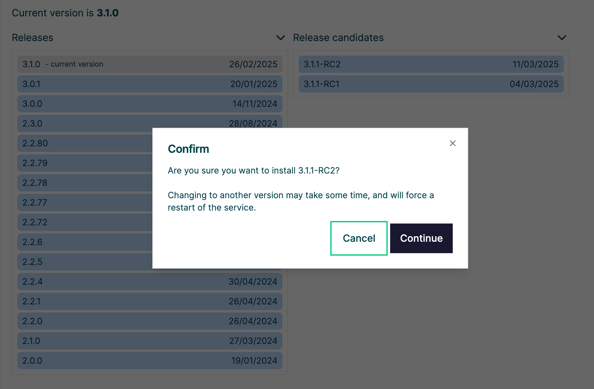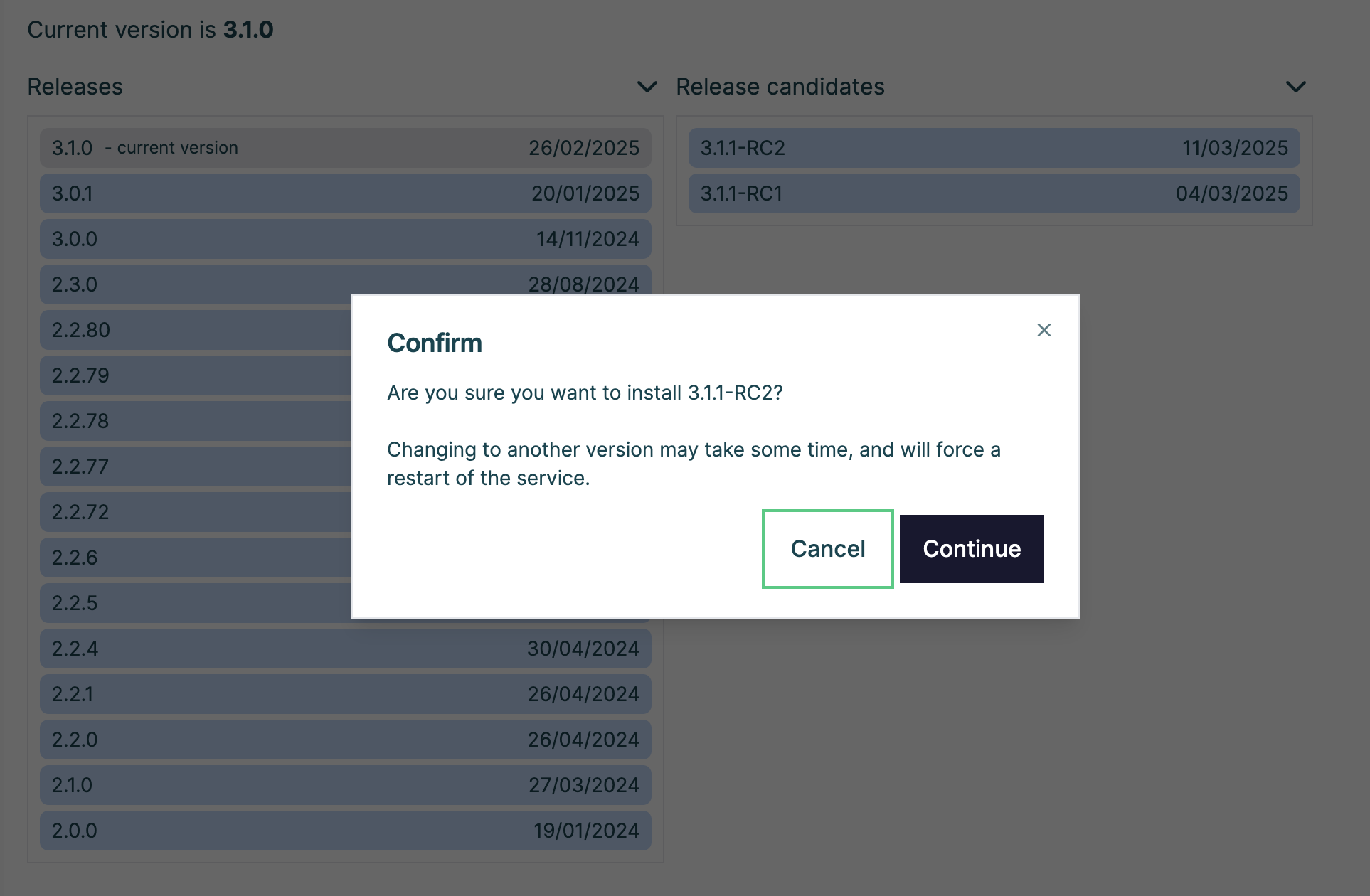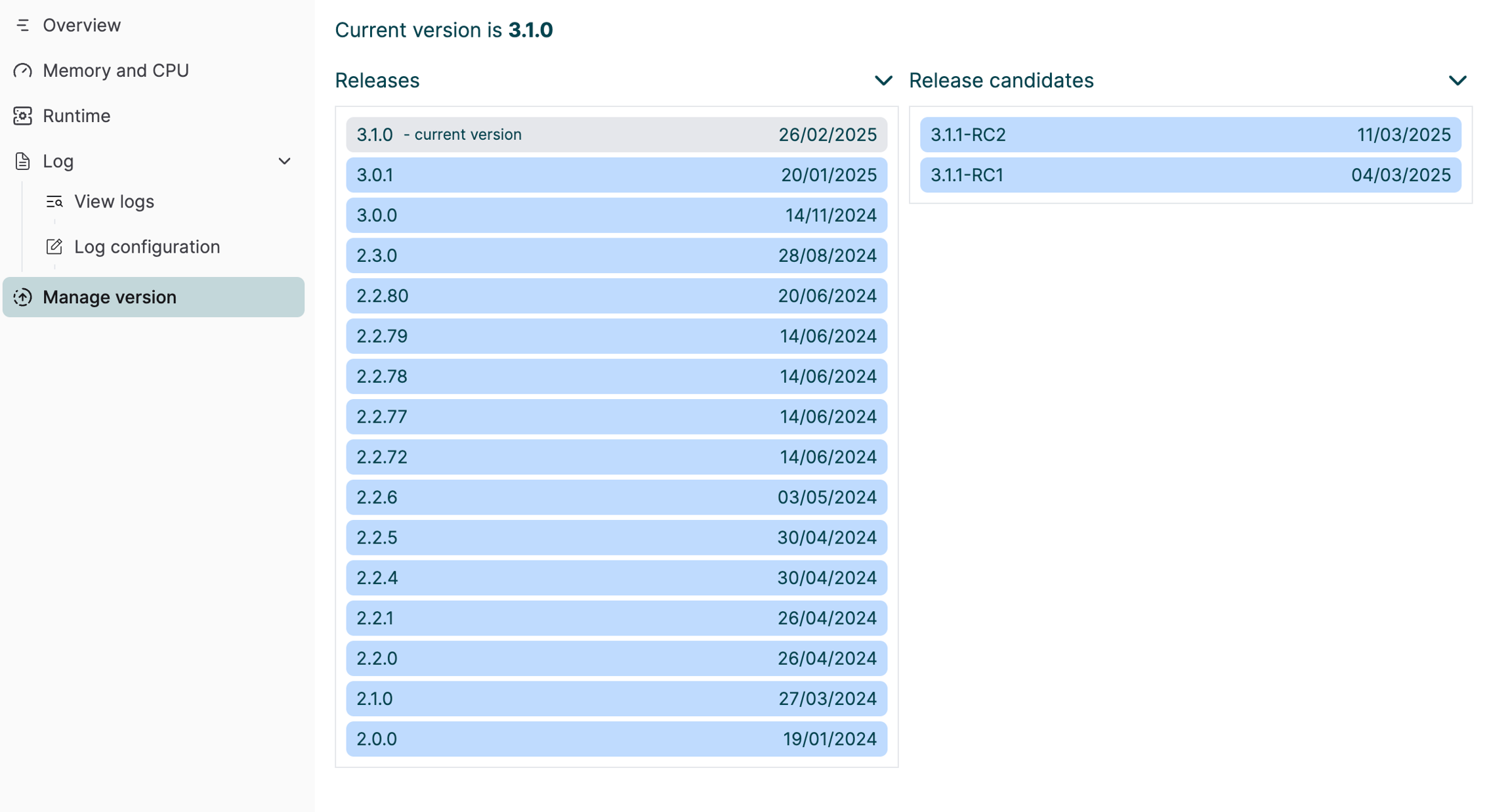 Allows for up/downgrade of managed service by downloading from Fortified ID application blood stream. This feature requires online access. If running in air_gapped mode this will not work.